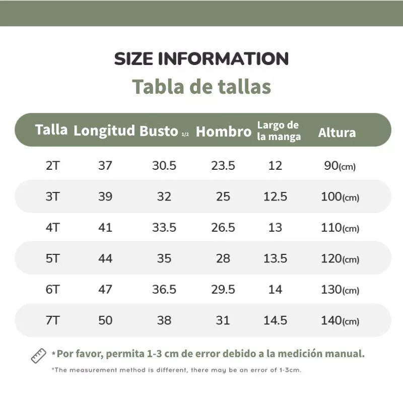 - Múltiples tallas disponibles: Ofrecemos una amplia gama de tallas para niños de todas las edades.