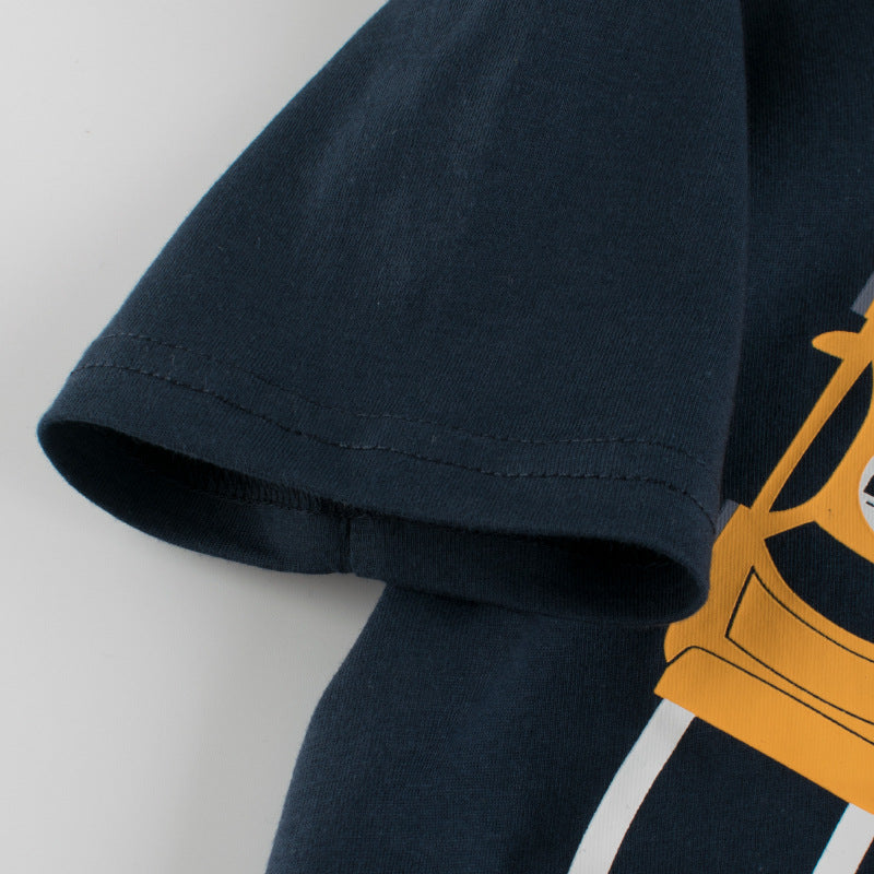 Camisetas de Manga Corta con Cuello Redondo para Niños con Estampado de Coches de Carrera
